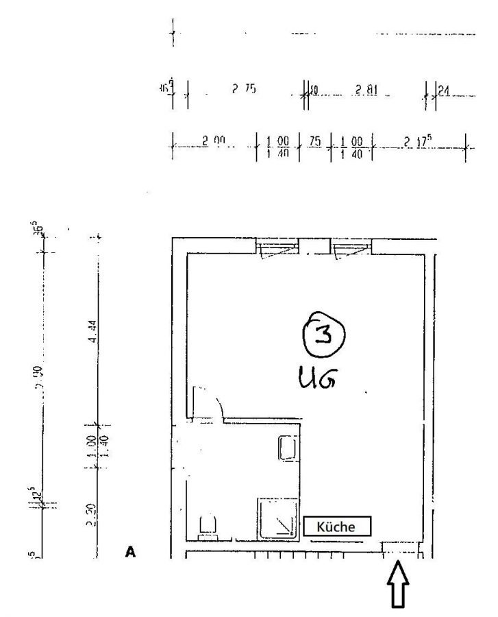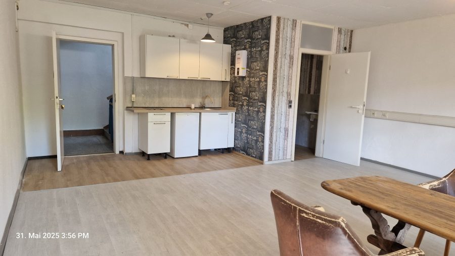 kleines Büro- bzw. Lager im Untergeschoss mit Einbauküche und WC.