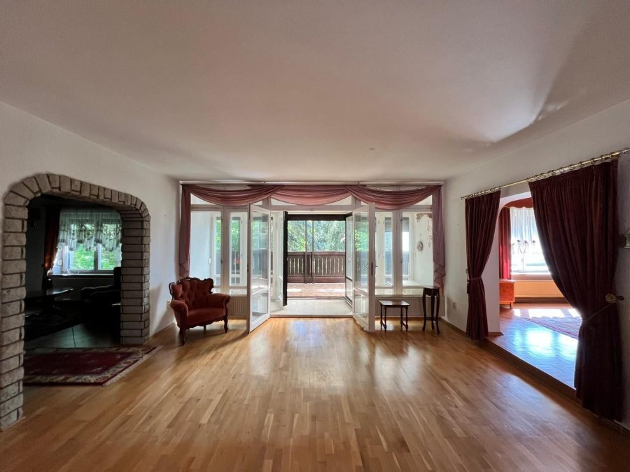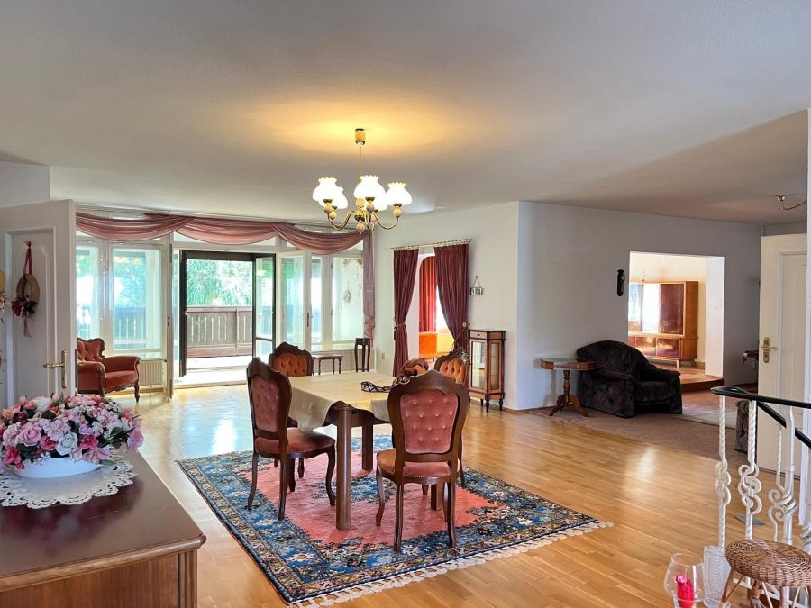 Das Herzstück des Hauses bildet der großzügige Wohnbereich im 1. OG mit direktem Zugang zu zwei Balkonen – einer nach Norden, der andere nach Süden ausgerichtet und ideal für jede Tageszeit. Die Wohnräume sind mit hochwertigem Parkettboden ausgestattet und strahlen eine warme, einladende Atmosphäre aus.