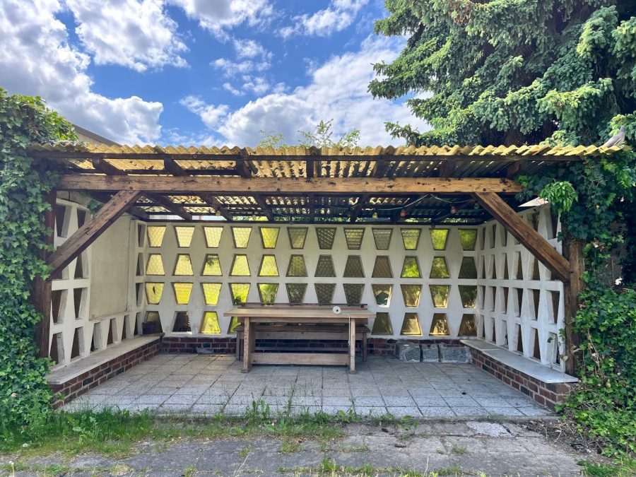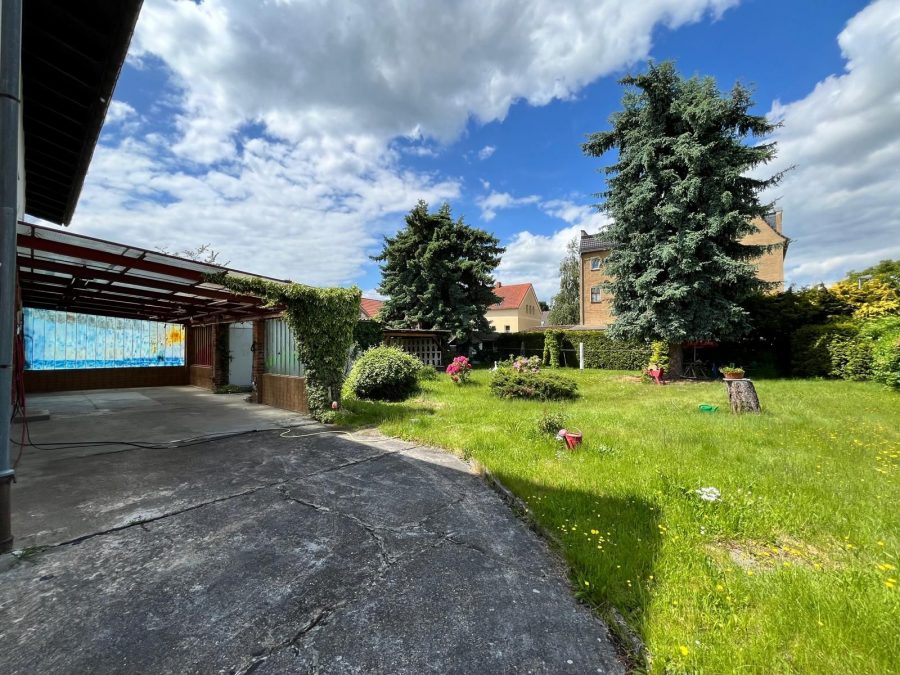 Der Außenbereich überzeugt mit einem schön angelegten Garten, der durch eine massive, überdachte Sitzecke zum Entspannen oder für gesellige Runden einlädt. Ein weiteres massives Lagerhaus im Garten ergänzt das Raumangebot und bietet zusätzlichen Stauraum für Materialien, Maschinen oder saisonale Gegenstände.