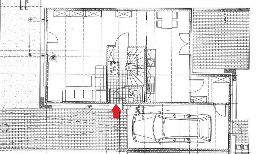 Das Eigenheim umfasst drei Etagen. Das Erdgeschoss besteht aus einem Eingangsbereich mit Gäste-WC und Treppenaufgang ins Obergeschoss, einem offenen Wohn-Küchen-Bereich, einem Hauswirtschaftsraum, einer ebenerdigen Terrasse hofseitig und der Garage.