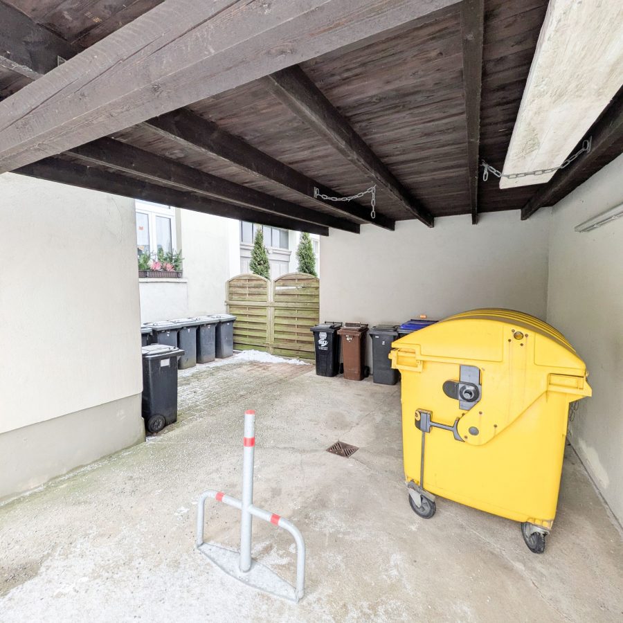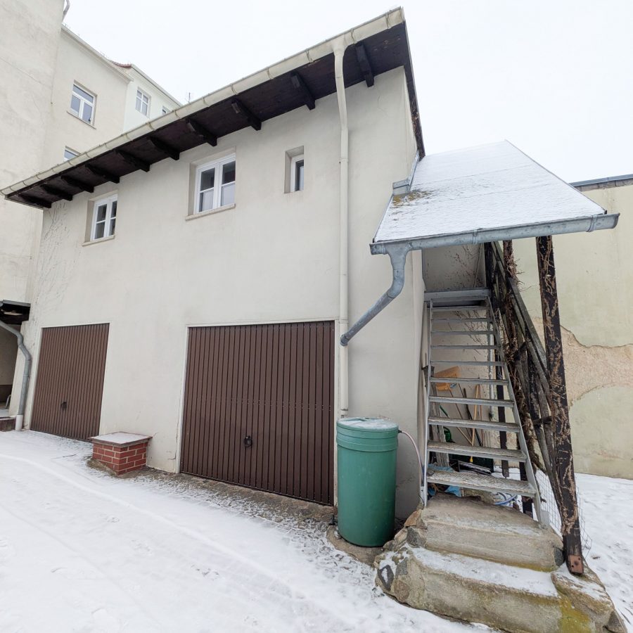 Im Innenhof befindet sich ein weiteres Wohngebäude mit einer kleinen separaten Wohneinheit von ca. 30 m², welches bislang als Ferienwohnung genutzt wurde. Unter der Wohneinheit befinden sich zwei Garagen und anschließend der überdachte Müllplatz. Gegenüberliegend findet sich ein weiterer Bau, der als Geräteschuppen und Abstellbereich nutzbar ist.