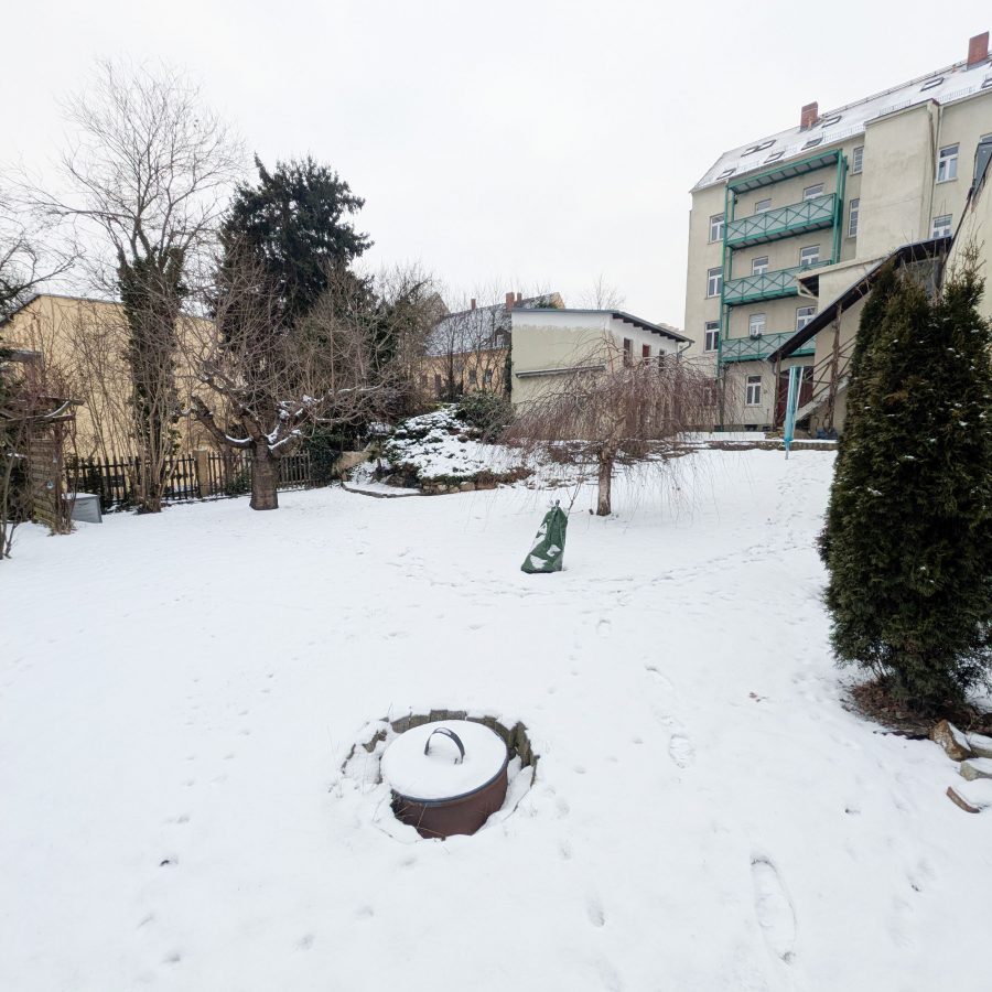 Der großzügige Innenhof bietet weiterhin Platz für zwei Stellplätze und überzeugt mit einer charmanten Grünfläche und verschiedenen idyllischen Sitzbereichen, welche den Wohnkomfort für die Mieter nochmals steigert.