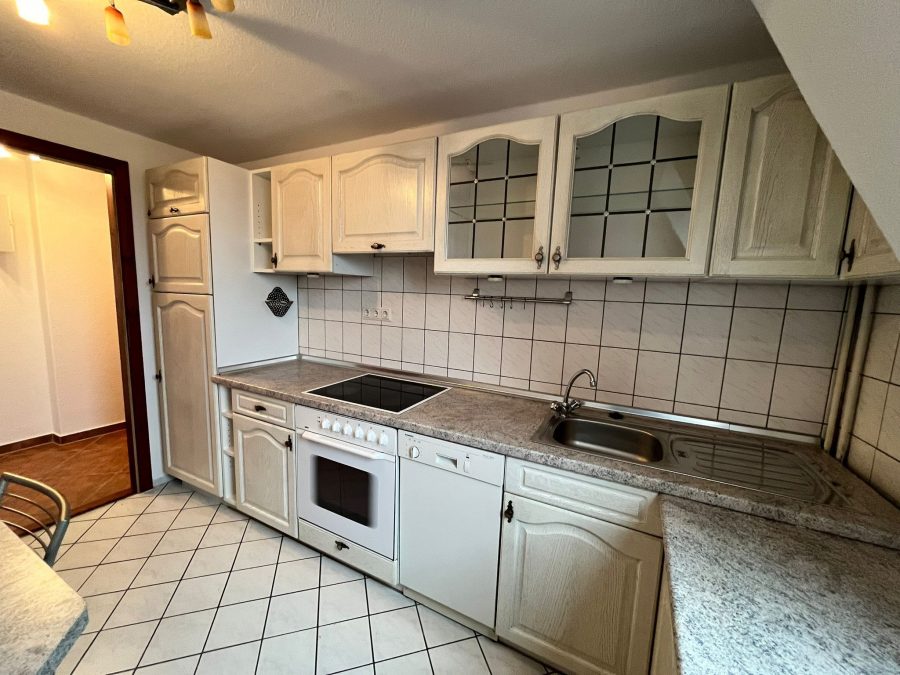 separate Küche mit Einbauküche, Wohnzimmer mit Treppe nach oben, Bad mit Badewanne, oben Schlafzimmer und kleines Büro, Ankleide oder Kinderzimmer sowie eine weitere große Abstellkammer (zusätzlicher Raum) Dachterrasse als Fluchtweg nur Nutzbar