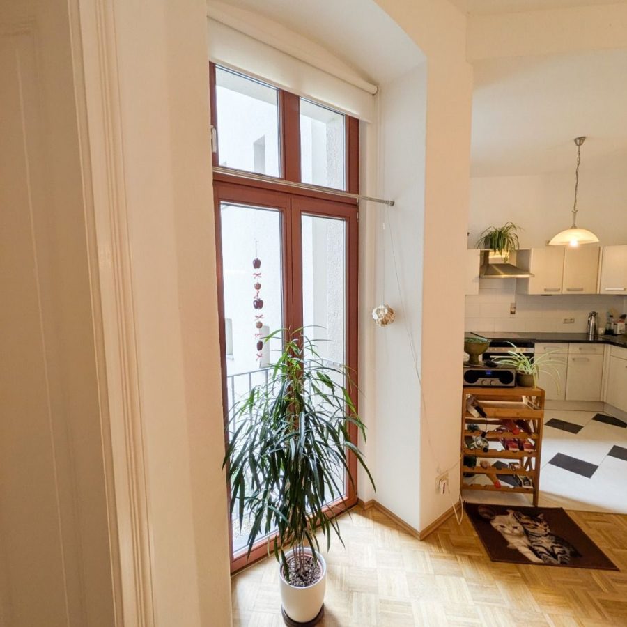 Die Wohnung befindet sich im Erdgeschoss (Hochparterre) eines repräsentativen Gründerzeithauses und überzeugt durch: