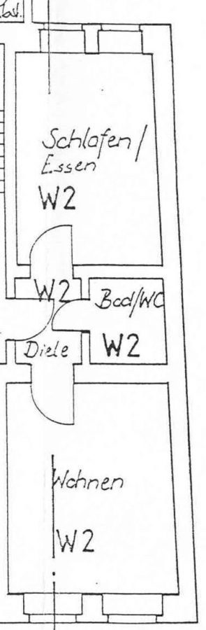 Es handelt sich um eine praktisch geschnittene 1-Raum-Eigentumswohnung im Erdgeschoss eines gepflegten Mehrfamilienhauses. Das Wohn- bzw. Schlafzimmer ist mit Laminat versehen, Flur und Küche sind mit PVC-Boden ausgestattet. Das Bad mit Dusche ist gefliest.
