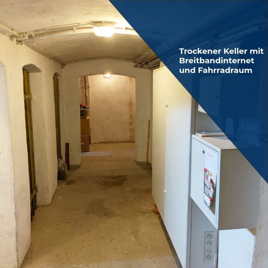 Zur Wohnung gehört ein Kellerabteil und eine separate Abstellkammer auf halber Treppe.