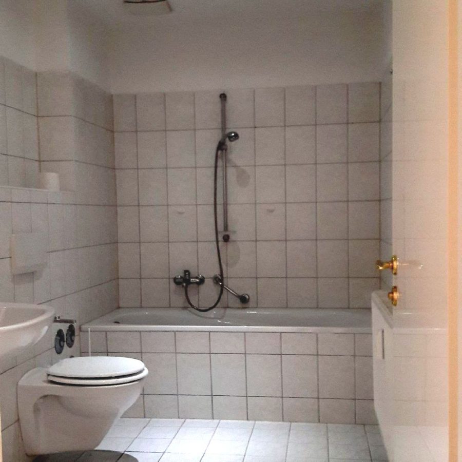 Die 2-Raum-Eigentumswohneinheit mit ca. 62 m² befindet sich ebenfalls im 2. Obergeschoss des gut situierten Mehrfamilienhauses. Die Wohnung besteht aus einem Flur / Eingangsbereich, einer hellen Küche mit Zugang zum östlich ausgerichteten Balkon, einem hofseitig gelegenen Schlafzimmer, einem groß-räumigen innenliegenden Bad mit Badewanne sowie Waschmaschinenanschluss und einem großzügigen, hellen Wohnzimmer. Zur Wohnung ist ein Kellerabteil als Nebengelass zugehörig. Flur und Wohnräume sind mit Laminat ausgelegt, Bad und Küchenbereich sind gefliest. Die Wände sind mit Raufasertapete weiß tapeziert.
