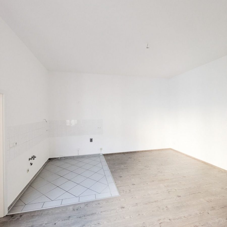 Der Flur sowie Wohn- und Schlafraum sind mit Laminat ausgestattet, das Bad ist gefliest und verfügt über Dusche und Wanne. Die offene Wohnküche ist ebenfalls gefliest. Das klassische Berliner Zimmer stellt ein weiteres besonderes architektonisches Merkmal der Einheit dar. Hier lässt sich Küche mit Wohnraum und geselligem Beisammensein ideal verbinden.