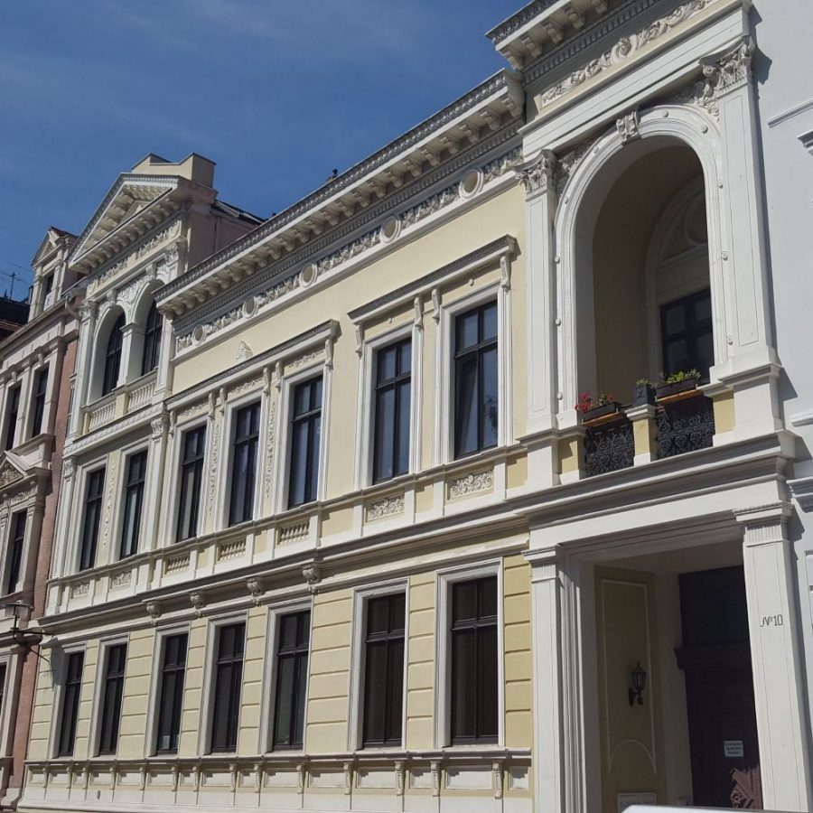 Das gutbürgerliche Mehrfamilienhaus wurde ca. 1900 erbaut und 1997 umfangreich saniert (Dach, Fassade, Fenster, Medien, etc.). Seit 2009 wurden am Gebäude jährlich kleinere und größere Instandsetzungsmaßnahmen durchgeführt, um das Objekt weiterhin zu erhalten. Die letzten aufwändigeren Investitionen waren u.A. 2013 Instandsetzung des Hauseingangsbereichs, 2018 Tausch der Velux-Dachliegefenster und 2020 Instandsetzungen am Seitenflügel. Aktuell sind Dacharbeiten beauftragt und sollen bis Sommer 2023 ausgeführt werden.