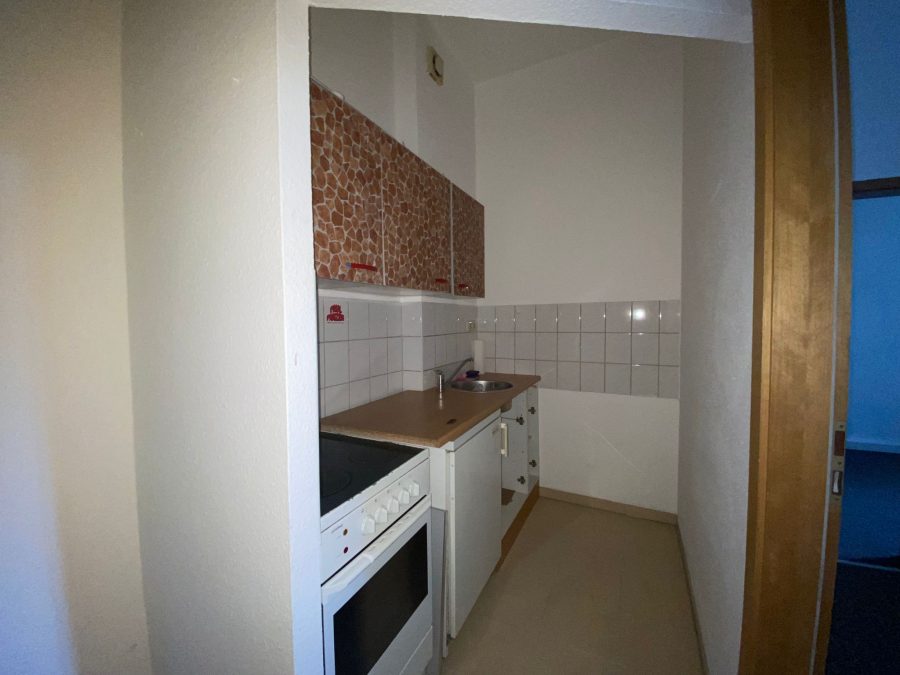 Diese gemütliche 2-Raum-Wohnung ist ausgestattet mit einer kleinen Küche samt einer Pantryküche.