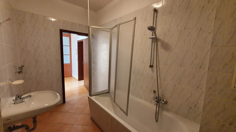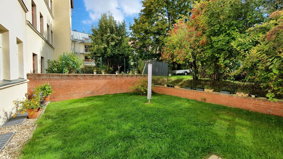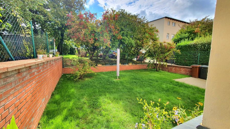 geräumiges Wohnzimmer, große separate Küche, Bad mit Wanne, Laminat, kleiner gemeinschaftlicher Garten
