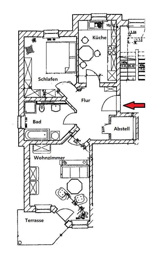 separate Küche, Tageslichtbad mit Wanne und Dusche, Terrasse