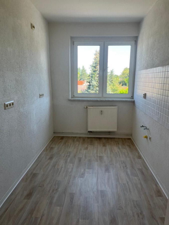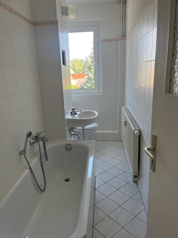separate Küche, Bad mit Fenster, Wanne, drei Räume, Laminatoptik