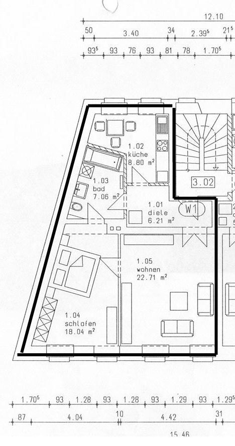 geräumige und zentrale 2-Raumwohnung mit separater Küche und Wanne !