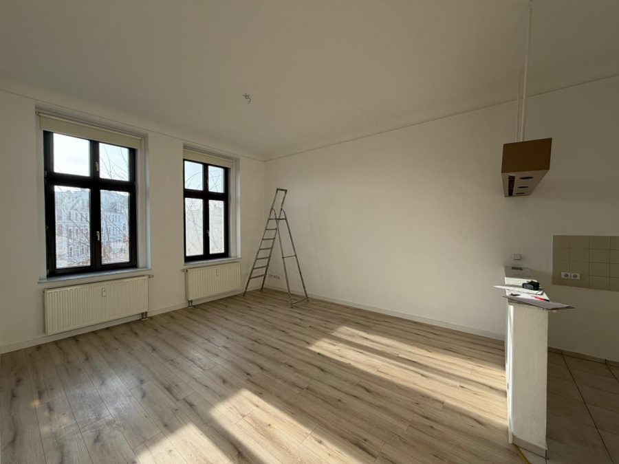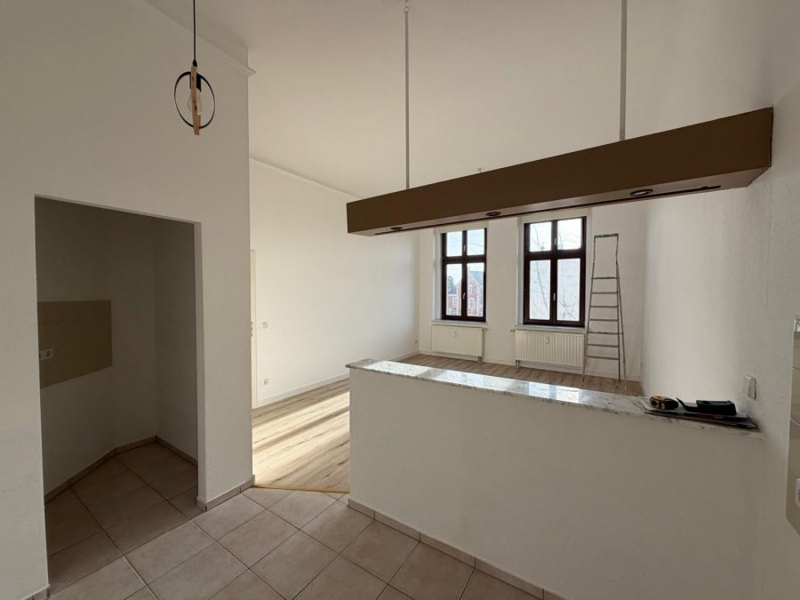 gemütliche 3- Raumwohnung mit offener Wohnküche samt Abstellkammer, Balkon vom Schlafzimmer abgehend, Bad mit Wanne, Fahrstuhl, Laminat