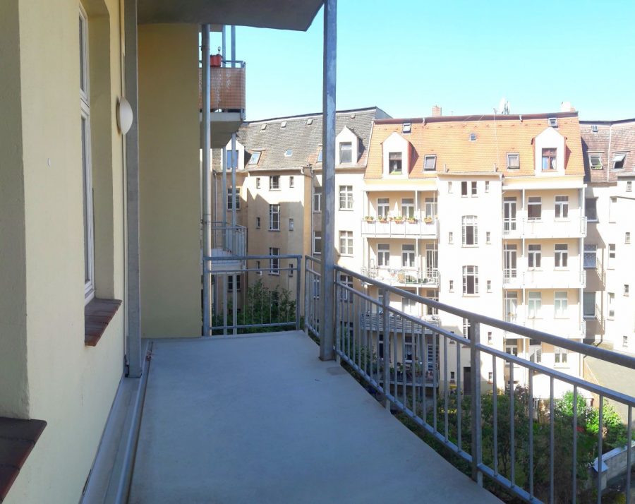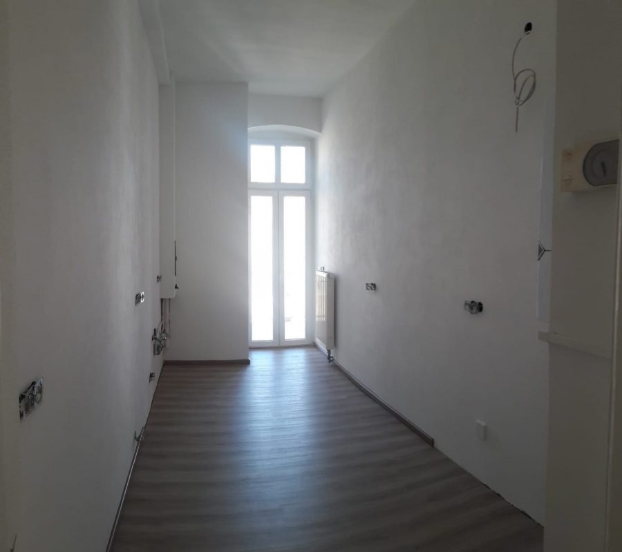 separate Küche und Zugang zum Balkon, kleines Bad mit Dusche