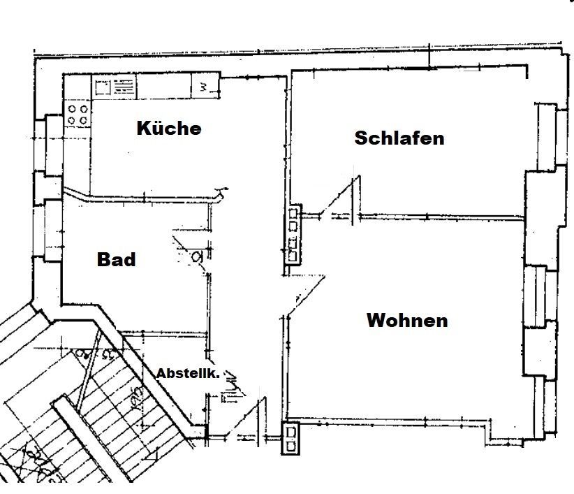 separate Küche, großer Wohnraum, Bad mit Fenster und Dusche, Abstellkammer, DSL