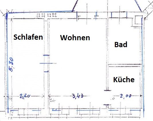 kleine gemütliche 2- Raumwohnung mit separater Küche und Einbauküche, Bad mit Dusche