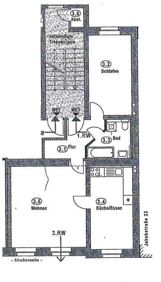 geräumiges Wohnzimmer, Schlafzimmer hofseitig, separate Küche, Bad mit Wanne, Laminat, Stellplatz im Hof möglich, Gartennutzung