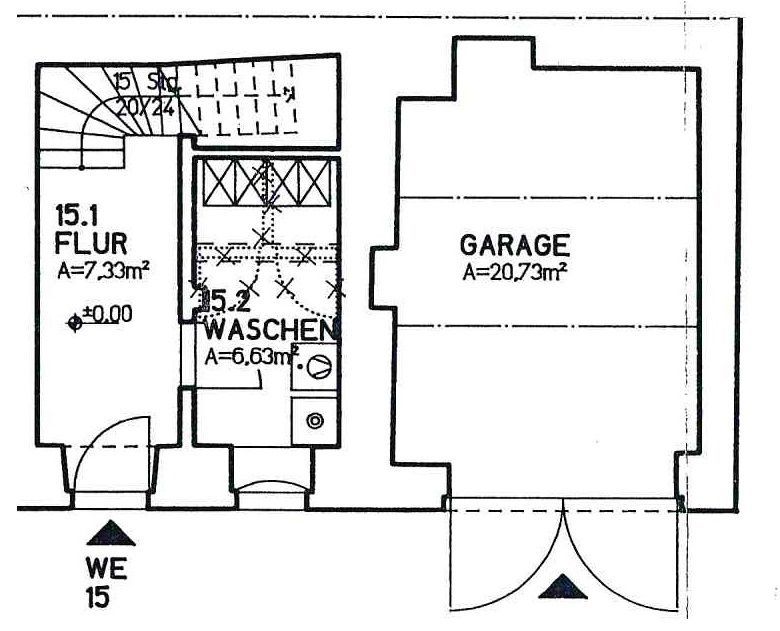 Die Wohnung erstreckt sich über zwei Etagen. Im Erdgeschoss befindet sich der Eingangsbereich sowie ein Hauswirtschaftsraum mit Waschmaschinen-/Trockneranschluss, Waschbecken sowie genügend Platz um Wäsche trocknen zu können. Das Schlaf-. Wohn- sowie Kinderzimmer ist im 1. OG zu finden, ebenfalls das Tageslichtbad mit Badewanne und die Küche. Vom Flur im 1. OG kann man über eine Klapptreppe den großzügigen Dachboden erreichen, der zu Abstellzwecken genutzt werden kann.