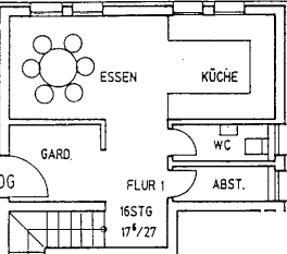separate Küche mit Esszimmer, Gäste-WC, Abstellkammer